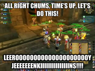 Im trying during 2005. Shouting Leeroy Jenkins is also the gaming culture equivalent of YOLO or Jesus take the wheel keep that in mind.