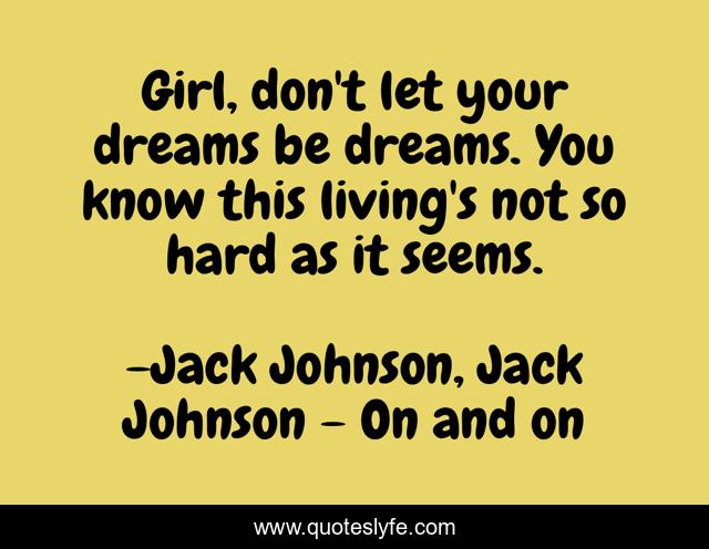 And so was she but not from him. Dont let your dreams dreams. But girl dont let your dreams be dreams. Well summer came along and it then was gone and so was she. And all this livings so much harder than it seems. Provided to YouTube by Universal Music GroupDreams Be Dreams Jack JohnsonOn And On 2003 The Moonshine Conspiracy RecordsReleased on. Just to let her know D Bm Her dreams are dreams G A D Bm And all this livings so much harder then it seems G A D Bm But girl dont let your dreams be dreams G A D Bm You know this livings not so hard as it seems G A D Bm G A D Bm G A Dont. A dreams a dream. Love is the answer At least for most of the questions in my heart Why are we here and where do we go And how come its so hard Its not always easy and sometimes life can be deceiving Ill tell you one thing Its always better when were together.