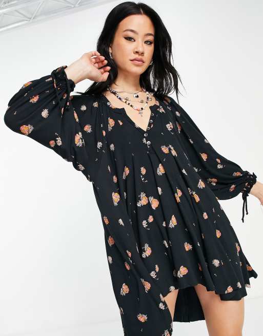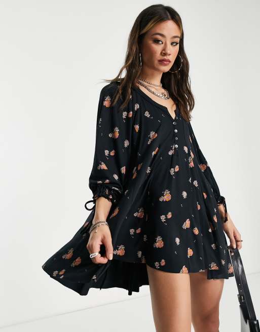 Super soft stretch-knit tunic from our We The Free collection featuring a Henley style neckline and dramatic puff sleeves in a flowy silhouette with uneven hemline. Winter Sun Printed Tunic - Black. Shop Womens Free People Size S Mini at a discounted price at Poshmark.